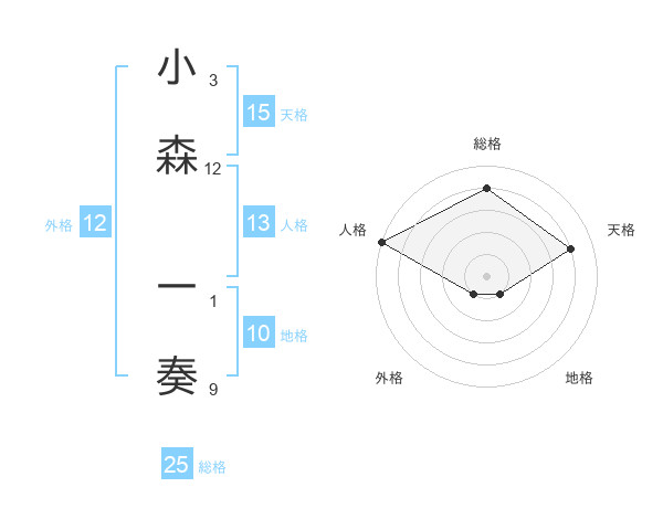 小森 一奏さんの総格は25画の4点!