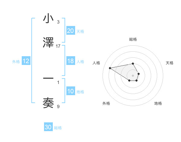 小澤 一奏さんの天格は20画の1点!