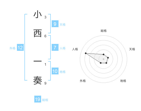 小西 一奏さんの総格は19画の1点!