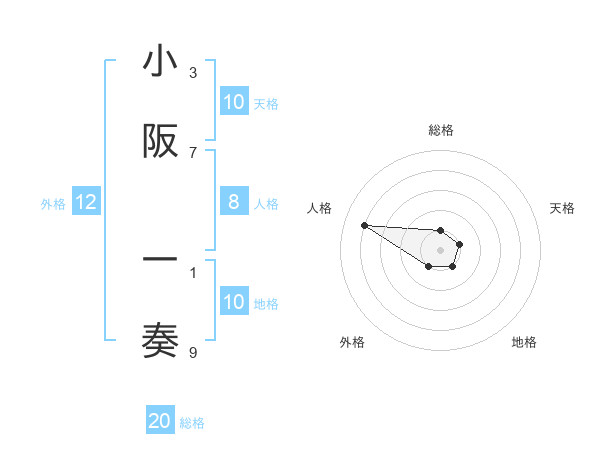 小阪 一奏さんの地格は10画の1点!