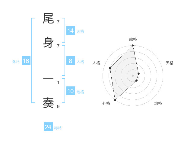 尾身 一奏さんの地格は10画の1点!