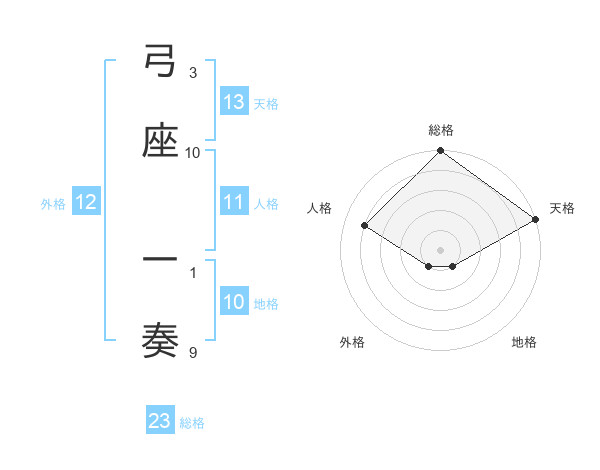弓座 一奏さんの総格は23画の5点!