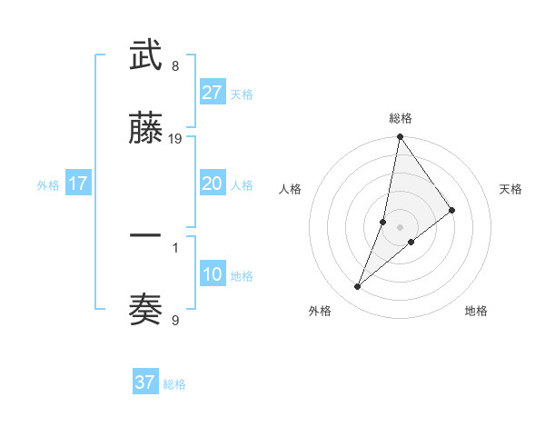 武藤 一奏さんの天格は27画の3点!