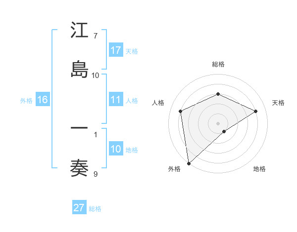 江島 一奏さんの総格は27画の3点!