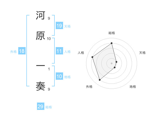 河原 一奏さんの総格は29画の4点!