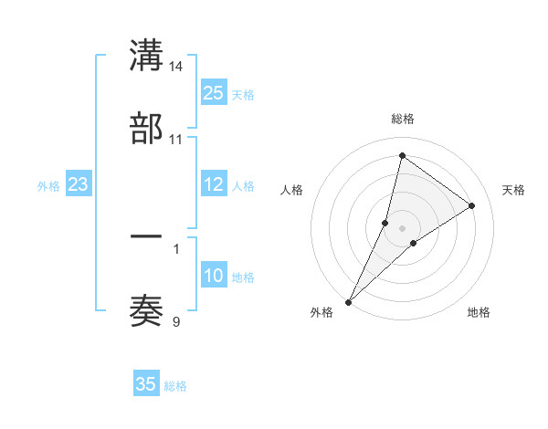 溝部 一奏さんの天格は25画の4点!