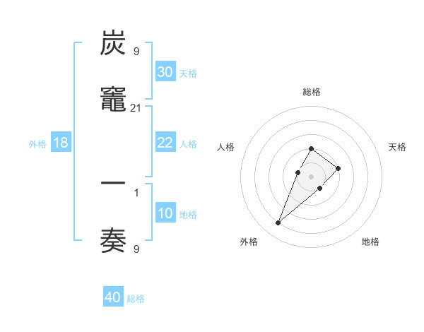 炭竈 一奏さんを姓名の画数から五運を鑑定