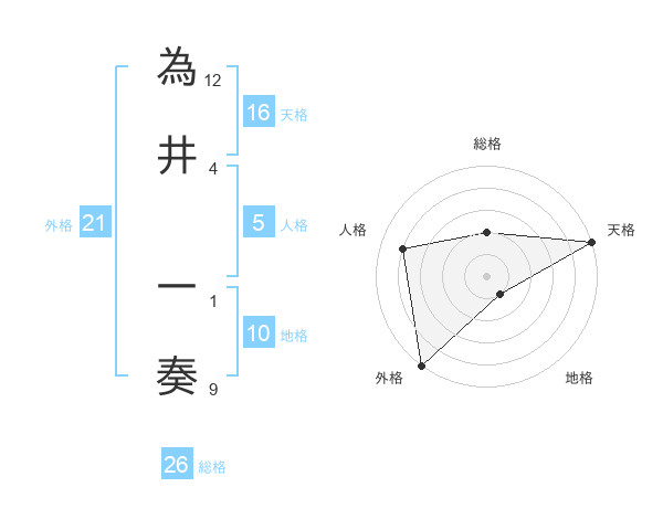 為井 一奏さんの天格は16画の5点!