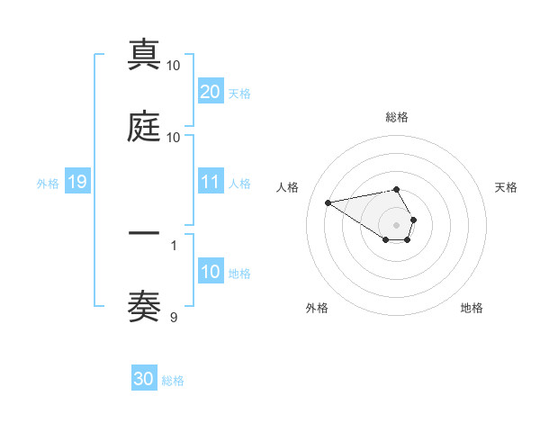 真庭 一奏さんの天格は20画の1点!
