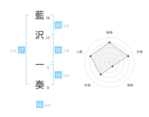 藍沢 一奏さんの天格は35画の4点!