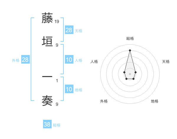 藤垣 一奏さんを姓名の画数から五運を鑑定