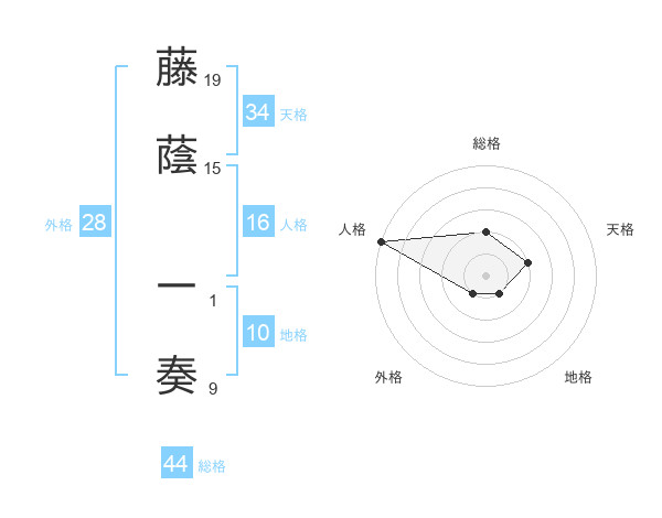 藤蔭 一奏さんの総格は44画の2点!