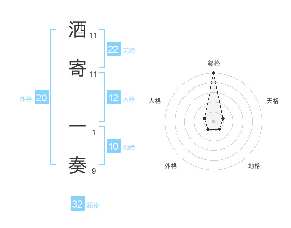 酒寄 一奏さんの総格は32画の5点!