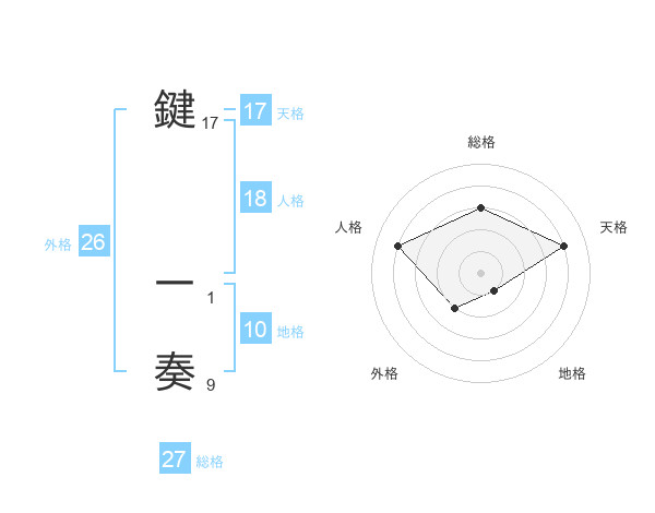 鍵 一奏さんを姓名の画数から五運を鑑定