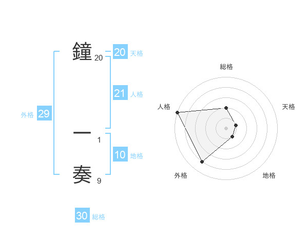 鐘 一奏さんの外格は29画の4点!