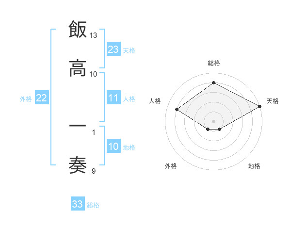 飯高 一奏さんの総格は33画の4点!