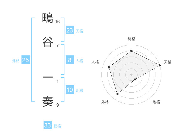 鴫谷 一奏さんの総格は33画の4点!