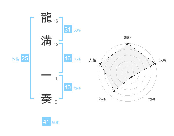 龍満 一奏さんを姓名の画数から五運を鑑定
