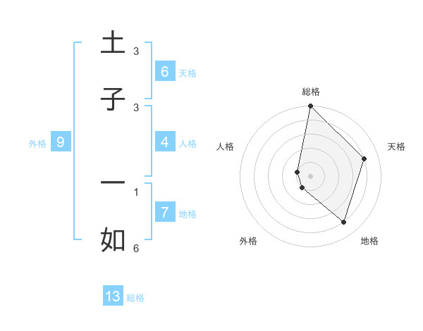土子 一如さんの総格は13画の5点!