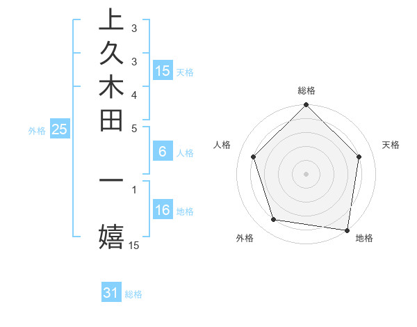 上久木田 一嬉さんを姓名の画数から五運を鑑定