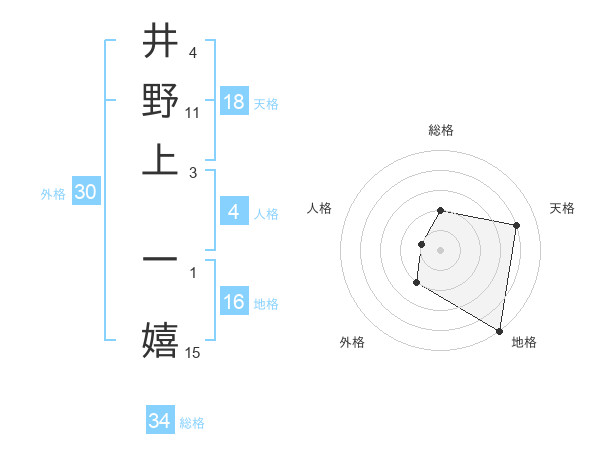 井野上 一嬉さんを姓名の画数から五運を鑑定