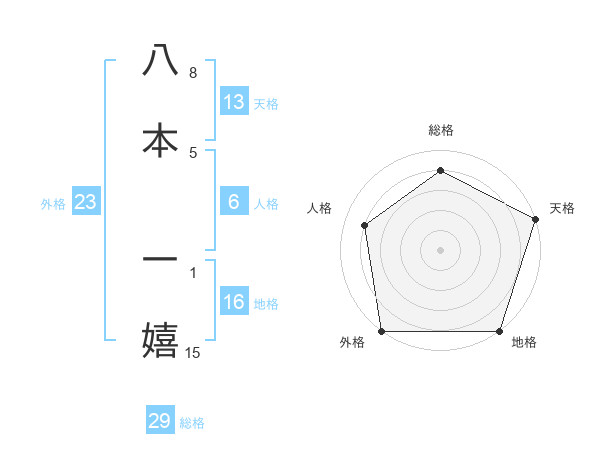 八本 一嬉さんを姓名の画数から五運を鑑定