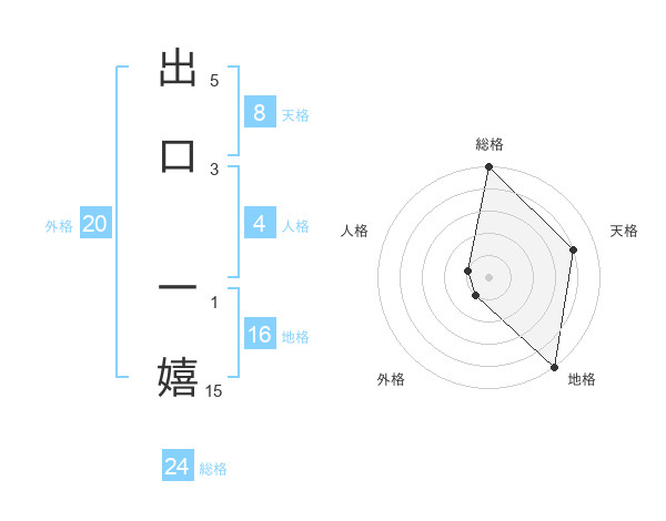 出口 一嬉さんの総格は24画の5点!