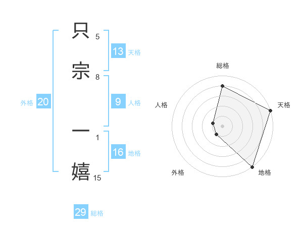 只宗 一嬉さんを姓名の画数から五運を鑑定