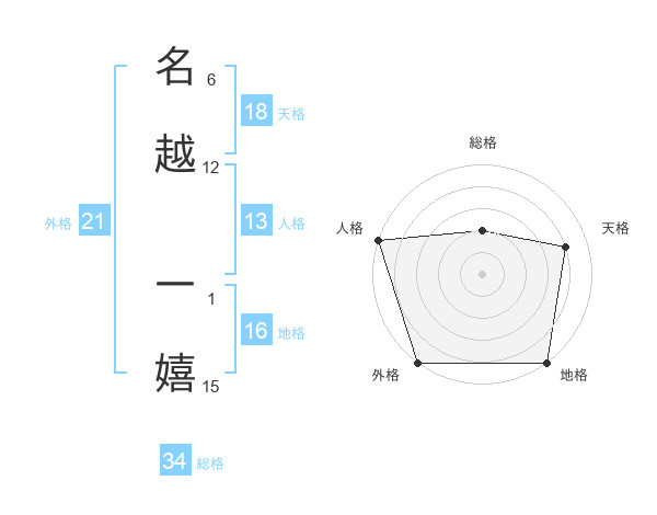 名越 一嬉さんを姓名の画数から五運を鑑定