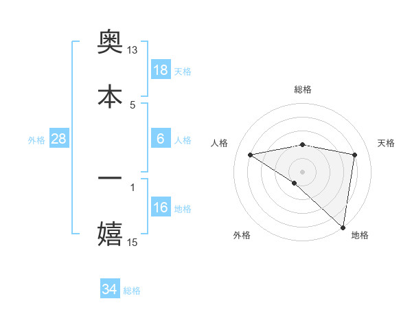 奥本 一嬉さんを姓名の画数から五運を鑑定