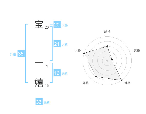 宝 一嬉さんを姓名の画数から五運を鑑定