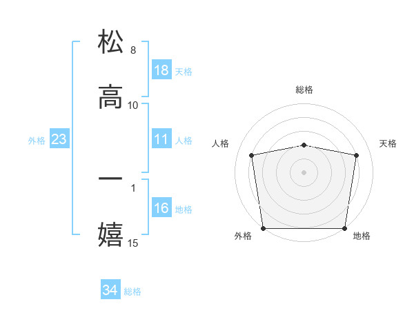 松高 一嬉さんを姓名の画数から五運を鑑定