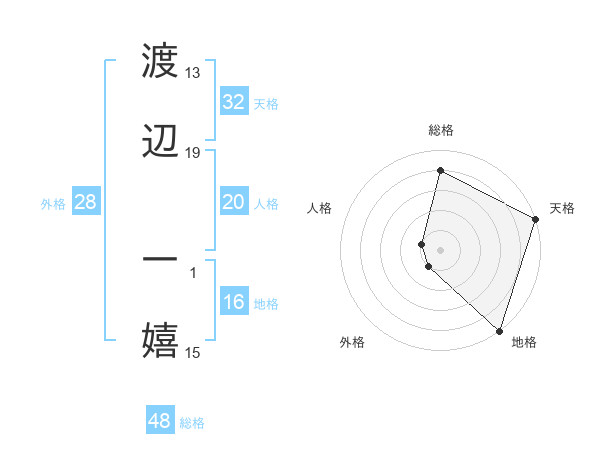 渡辺 一嬉さんの天格は32画の5点!