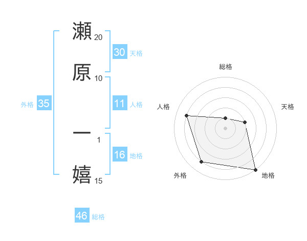 瀬原 一嬉さんの天格は30画の2点!