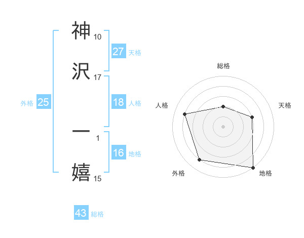 神沢 一嬉さんの天格は27画の3点!