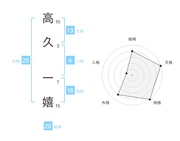 高久 一嬉さんを姓名の画数から五運を鑑定