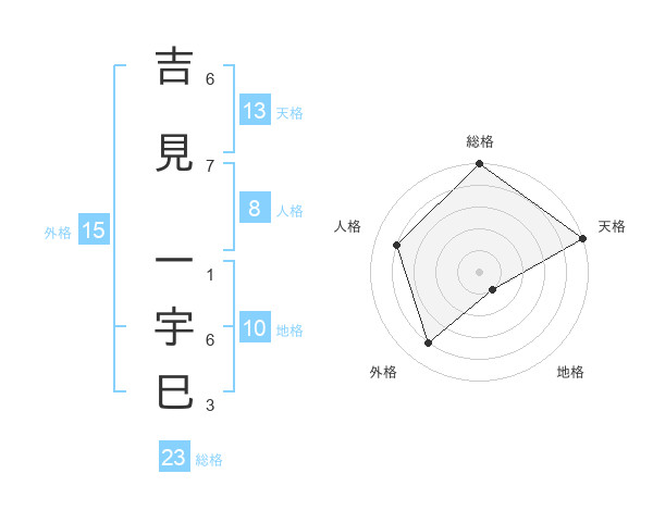 吉見 一宇巳さんの天格は13画の5点