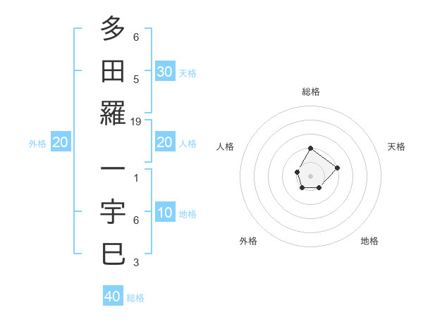 多田羅 一宇巳さんの総格は40画の2点!