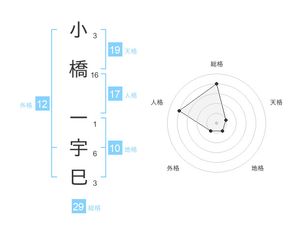 小橋 一宇巳さんを姓名の画数から五運を鑑定