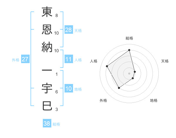 東恩納 一宇巳さんを姓名の画数から五運を鑑定