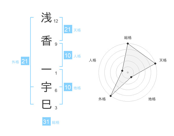 浅香 一宇巳さんを姓名の画数から五運を鑑定