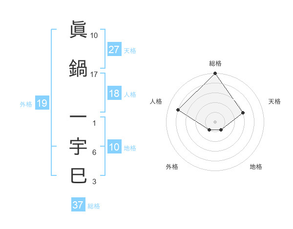 眞鍋 一宇巳さんを姓名の画数から五運を鑑定