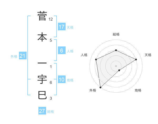 菅本 一宇巳さんの総格は27画の3点!
