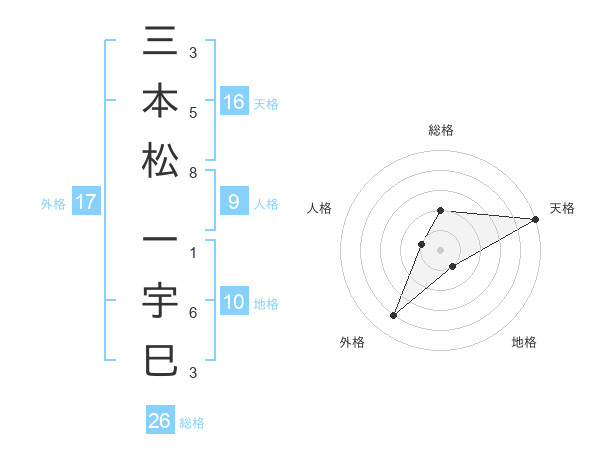 三本松 一宇巳さんを姓名の画数から五運を鑑定