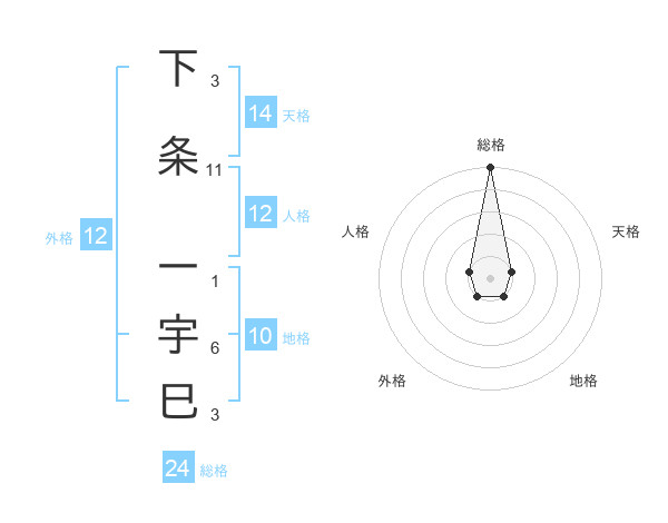 下条 一宇巳さんの総格は24画の5点
