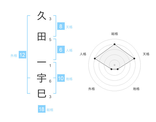 久田 一宇巳さんを姓名の画数から五運を鑑定