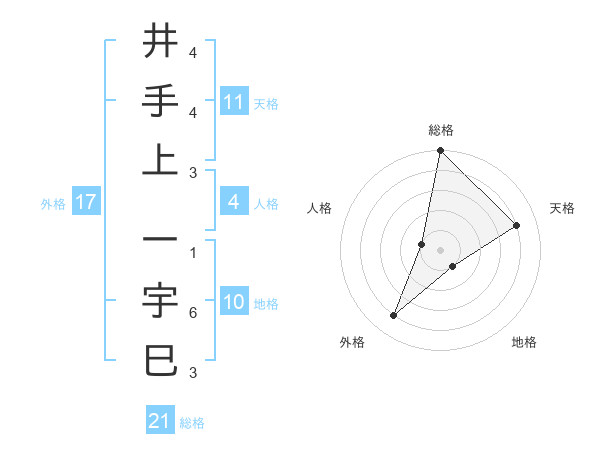 井手上 一宇巳さんを姓名の画数から五運を鑑定