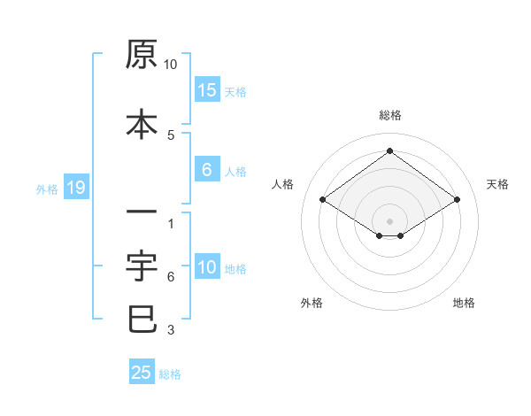 原本 一宇巳さんの総格は25画の4点