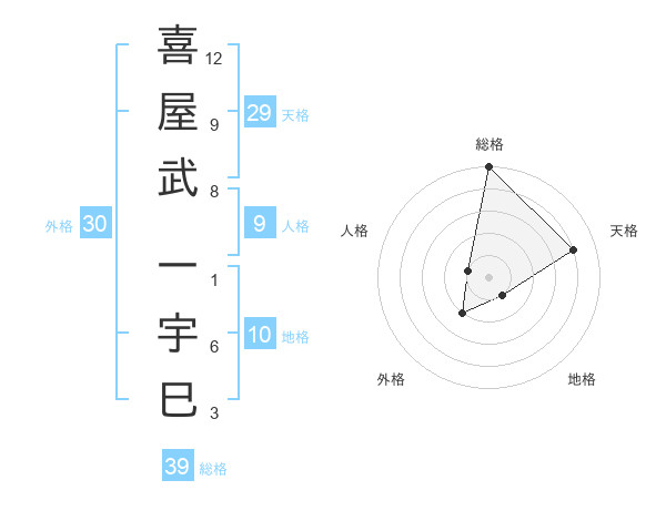 喜屋武 一宇巳さんの総格は39画の5点!