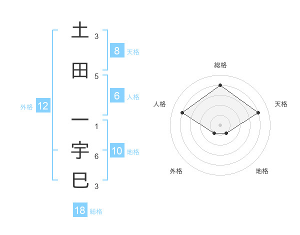 土田 一宇巳さんを姓名の画数から五運を鑑定